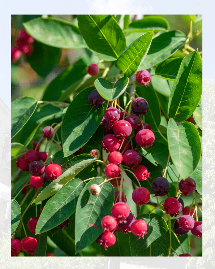 - I suoi frutti, le bacche di saskatoon - conosciute anche come juneberry - sono simili ai mirtilli, ma con un sapore più dolce e mandorlato. Sono ricche di nutrienti come ferro, proteine, vitamine (A, E, B6) e antiossidanti.