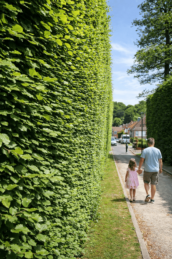 Grazie al ritmo di crescita medio-rapido (circa 30–60 cm/anno) e alla lunga durata del fogliame, il faggio è ideale come barriera lungo le recinzioni, divisore da giardino o frangirumore naturale.