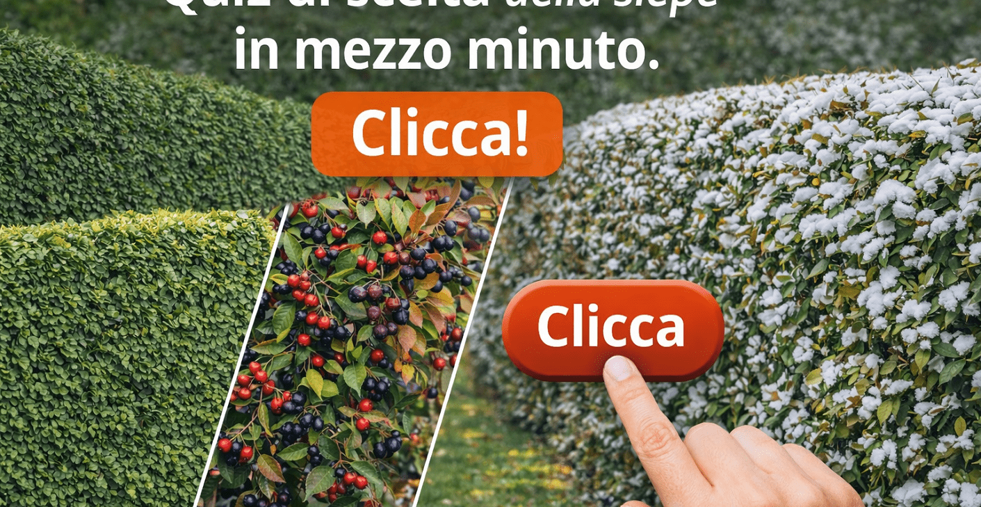 Un quiz semplice e veloce per aiutarti a scegliere la siepe più adatta alle tue esigenze. Rispondi a poche domande su crescita, manutenzione, estetica e utilizzo, e scopri quale tipo di siepe è ideale per il tuo giardino.
