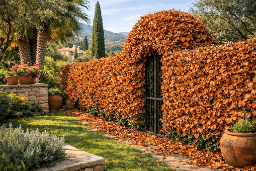 La Siepe di faggio cresce in modo uniforme e ordinato, risponde molto bene alla potatura ed è ideale per siepi formali, lineari o alte. È perfetta sia per giardini privati che per contesti più rappresentativi.